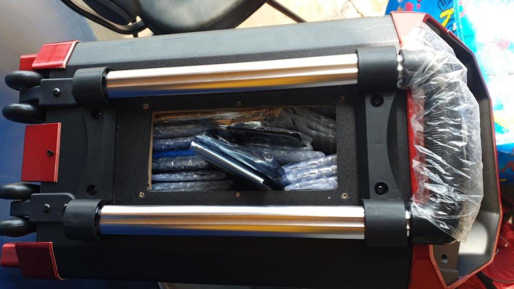 Em revista ao bagageiro do veículo foram encontradas diversas telas de celulares ocultas em uma caixa de som, sem o devido desembaraço aduaneiro.