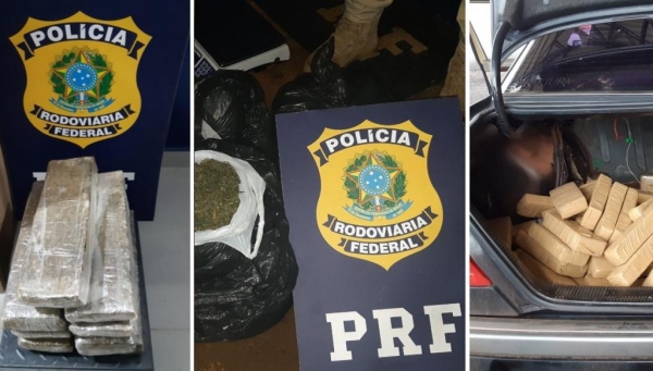 A Polícia Rodoviária Federal (PRF) fez três apreensões de maconha em três municípios diferentes nas últimas horas na região oeste do Paraná.