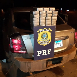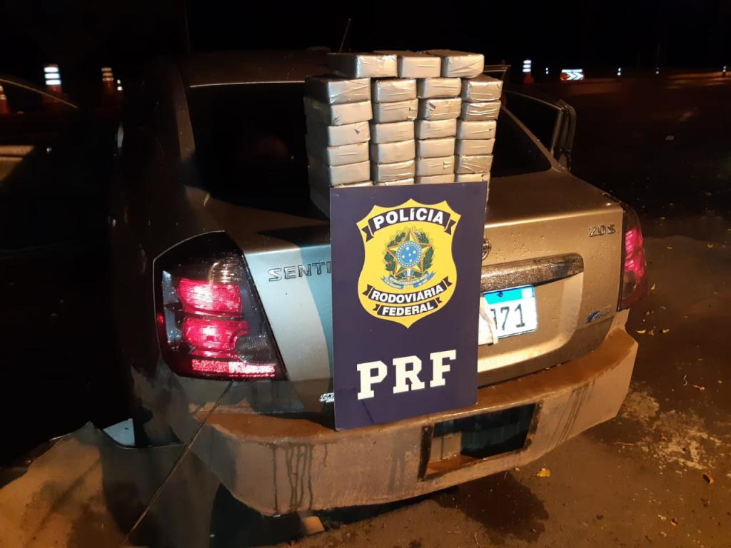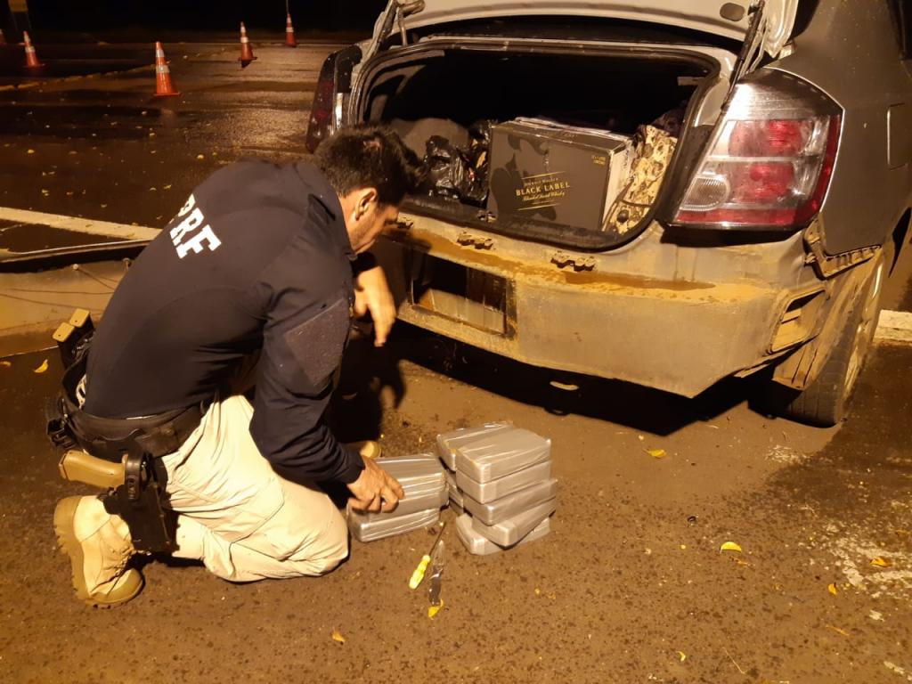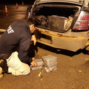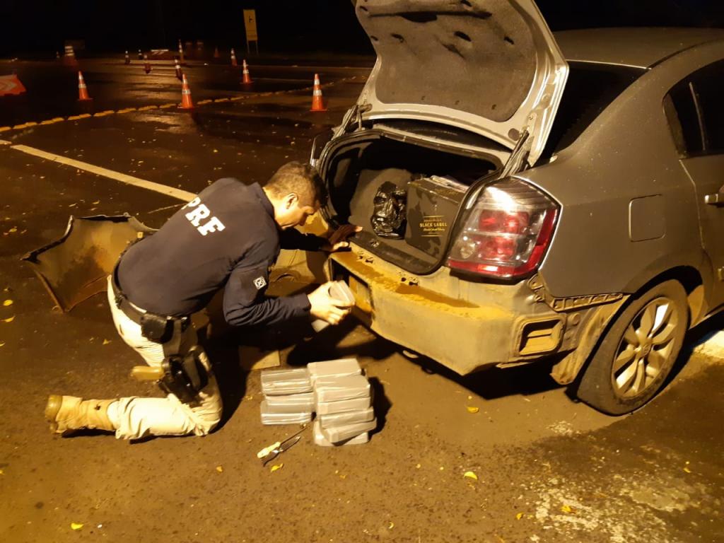 A droga estava escondida dentro do para-choque traseiro e no painel de instrumentos de um automóvel Nissan Sentra, abordado na BR-487.