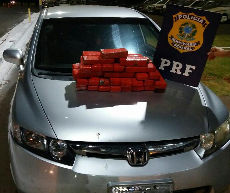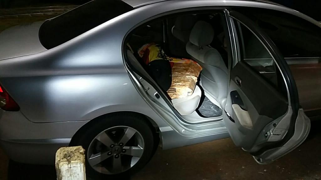 Os policiais solicitaram que tanto o motorista, 35 anos, quanto a passageira, 24 anos, a qual disse ser namorada do motorista, desembarcassem do automóvel. Sendo assim, os agentes federais realizaram vistoria no interior do carro e encontraram, sobre o banco traseiro, 33 tabletes de maconha cobertos por uma manta, os quais totalizaram aproximadamente 18,670 kg (dezoito quilos e seiscentos e setenta gramas) da droga.