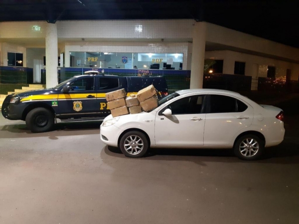 A Polícia Rodoviária Federal (PRF) apreendeu 90,4 quilos de maconha na noite deste sábado (11) em Guaíra, na região oeste do Paraná. A droga estava em um automóvel Jac J3, abordado em frente à Unidade Operacional Ponte Ayrton Senna, na BR-163.
