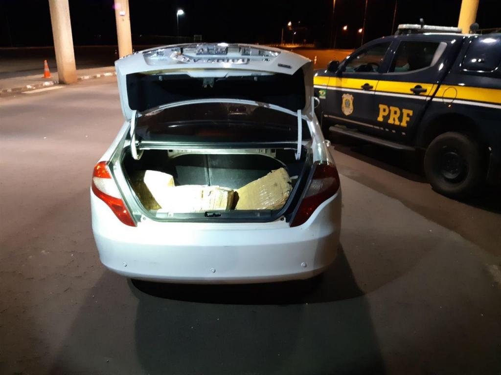 Ao abrir o porta-malas, os policiais rodoviários federais se depararam com sete fardos de maconha.