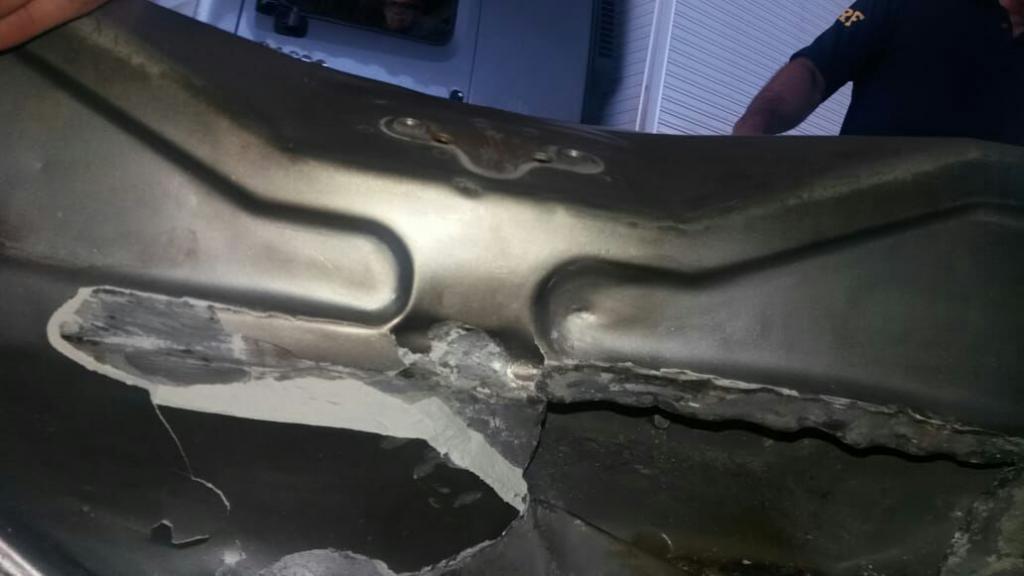 Durante a abordagem policial, após breve entrevista com o condutor do veículo, os policiais decidiram realizar uma fiscalização minuciosa que culminou na localização de entorpecentes acondicionados nas caixas de ar e para-choque do veículo.