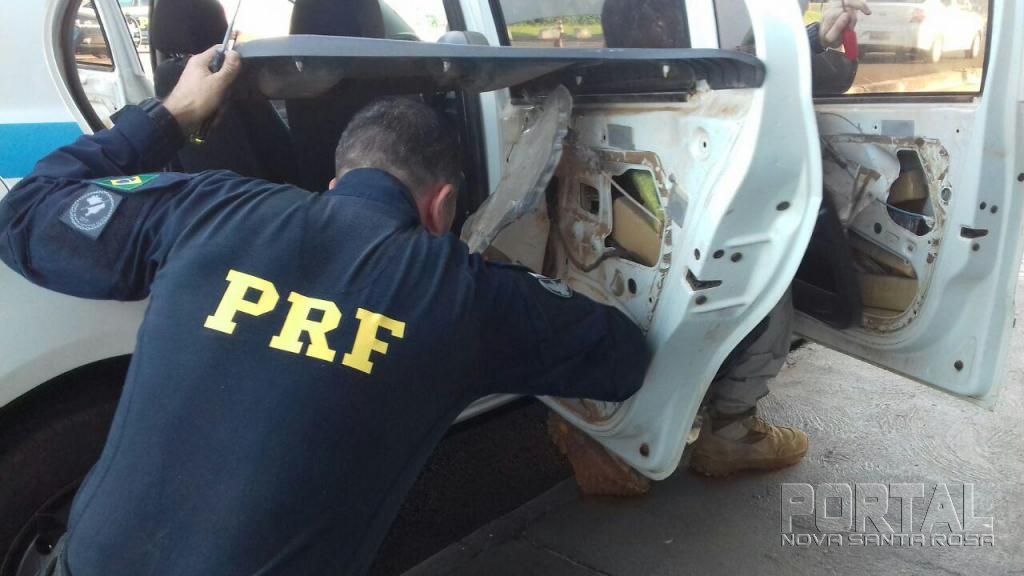 O carro, um táxi com placa de Lagoa Vermelha (RS), foi abordado na BR-277, em frente à unidade operacional da PRF.