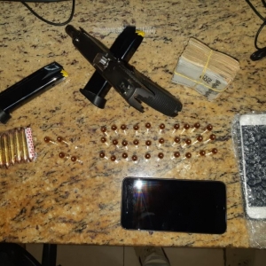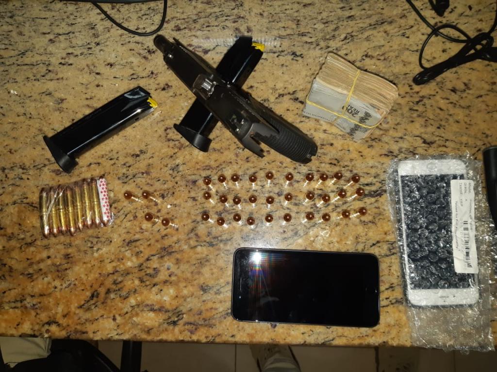 Ao constatar que o estepe também possuía sinais de adulteração foi deslocado até uma borracharia onde foi aprendido, dentro do estepe, uma arma (pistola), munição e dois carregadores 9mm.