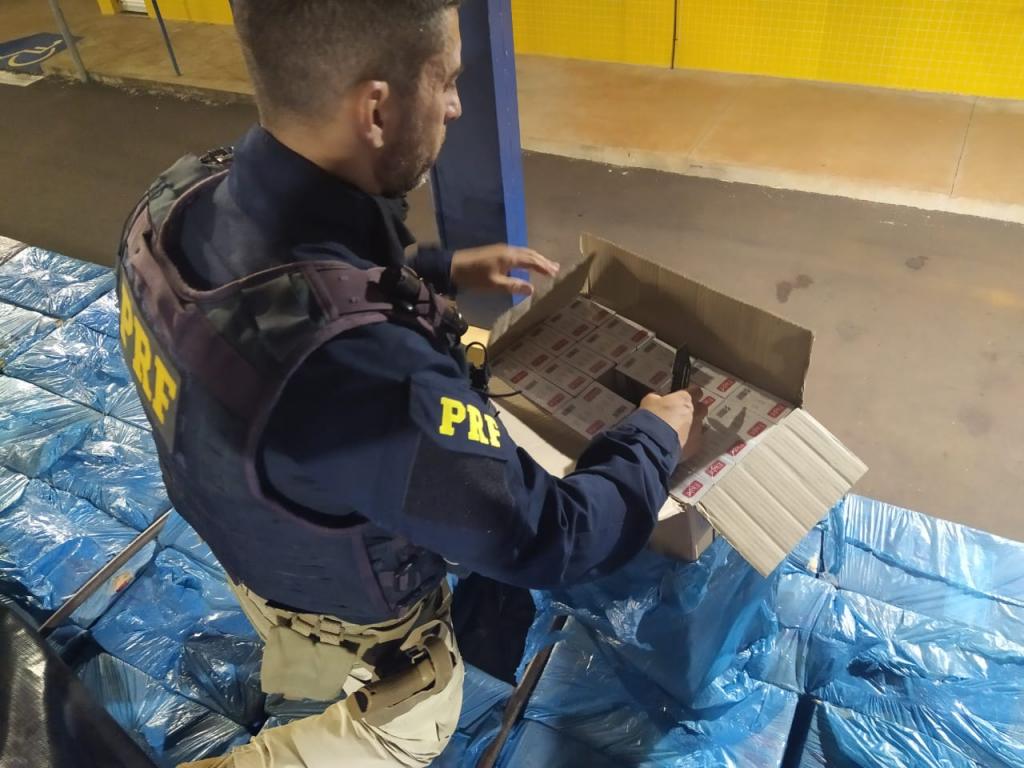 Ao inspecionar a carga, foi constatado que o compartimento de carga estava carregado com grande quantidade de caixas de cigarros de origem paraguaia.