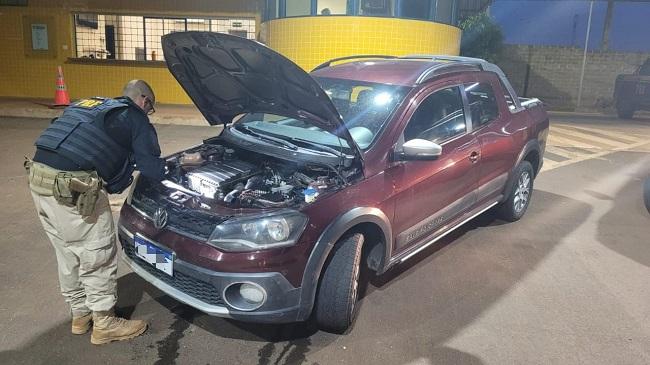 O automóvel, um VW/Saveiro de cor vermelha, ostentava placas de Dois Vizinhos, também no Paraná. No entanto, durante a verificação, os agentes constataram que o veículo possuía restrição judicial registrada na cidade de Iguatu, no estado do Ceará.