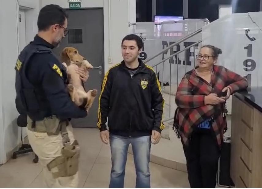 Uma força-tarefa foi montada pelos policiais rodoviários federais para descobrir os tutores de um cachorro que apareceu, no final de semana na Unidade Operacional de Cascavel, bastante magro e faminto.