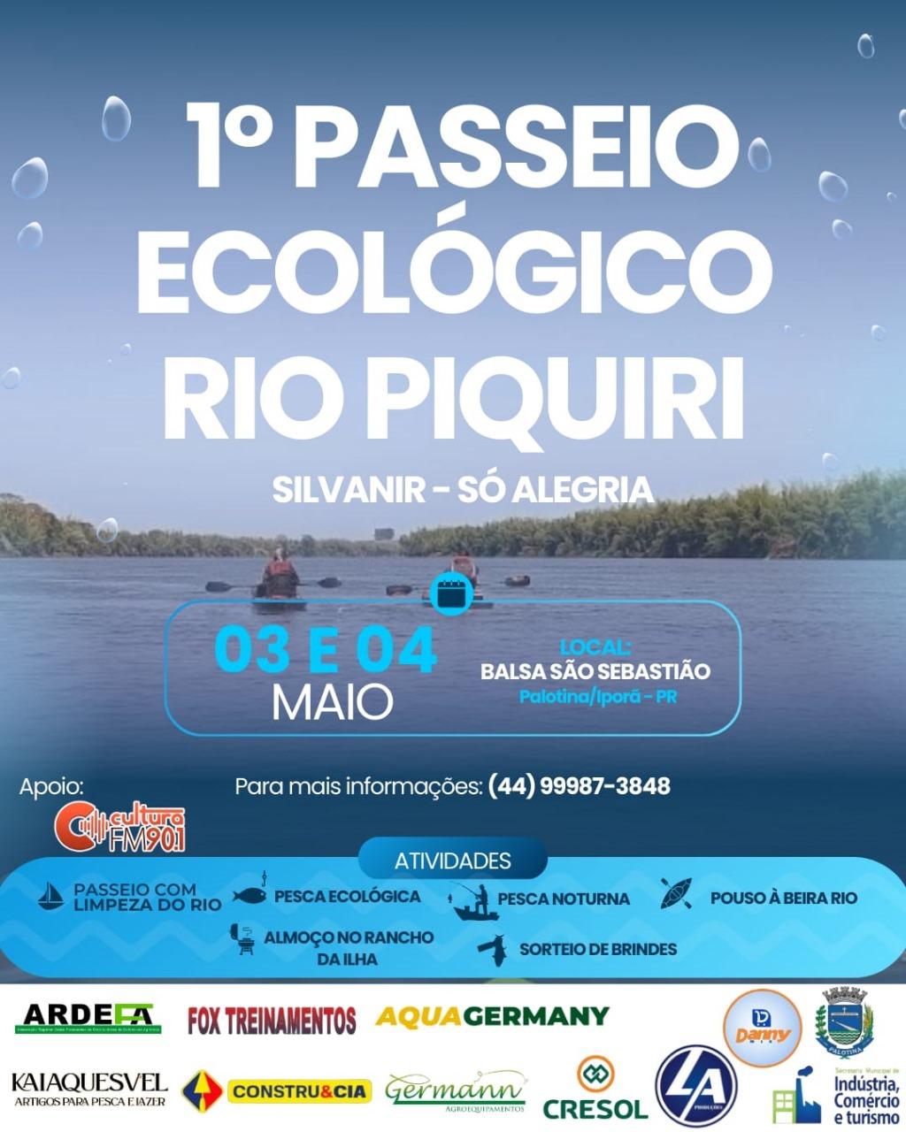 Está programado para os dias 3 e 4 de maio de 2025 o 1º Passeio Ecológico de Barcos e Caiaques no Rio Piquiri, com saída a partir da Balsa São Sebastião, na comunidade de Oroietê.