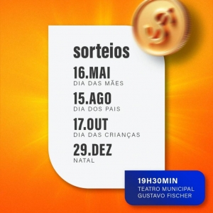 A Prefeitura de Nova Santa Rosa, por meio da Secretaria de Indústria, Comércio e Turismo, informa que o primeiro sorteio de 2025 da Campanha Nota Premiada – Valorize a Nota Fiscal, compre no comércio de Nova Santa Rosa e concorra a prêmios - ocorrerá no dia 16 de maio, alusivo ao Dia das Mães. Haverá ainda sorteio do Dia dos Pais, Dia das Crianças e Natal.