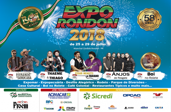 A ExpoRondon 2018 está com uma série de novidades, uma delas trata dos quatro grandes shows nacionais, três sertanejos e um gospel, todos gratuitos, além do Circuito de Rodeio. Os sertanejos serão no Estádio Municipal Valdir Schneider e o gospel na Arena de Rodeio. Para quem quer um espaço especial para assistir aos shows, serão comercializados camarotes. As vendas dos camarotes terão início na quinta-feira (05) e poderão ser adquiridos diretamente na Proem, localizada no terceiro piso da prefeitura.