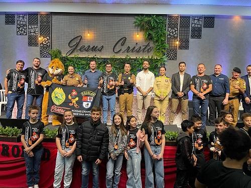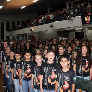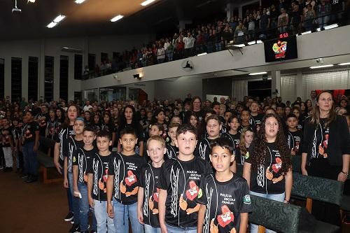 Estudantes de turmas de 5° ano de nove escolas municipais e de um colégio particular receberam, na noite de quarta-feira (31), durante cerimônia realizada no Auditório Ecos da Liberdade, em Marechal Cândido Rondon, os certificados de formatura do Proerd (Programa Educacional de Resistência às Drogas e à Violência).