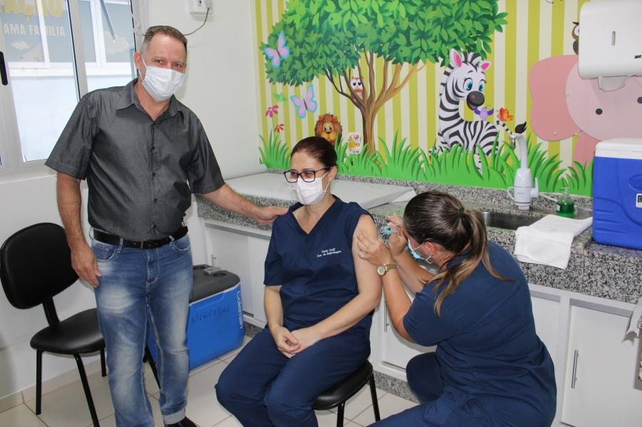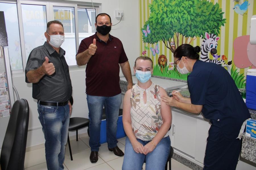 Adelete Becker, de 34 anos, 13 destinados a área de saúde, enfermeira responsável pelo setor de imunização, foi a primeira pessoa a ser vacinada contra o Coronavírus no município.