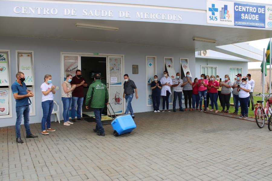 Uma cerimônia simbólica realizada no Centro de Saúde de Mercedes, na manhã desta quarta-feira (20), que contou com a presença do Prefeito Laerton Weber e do Secretário de Saúde Alexandre Graunke, marcou o início da vacinação contra o Coronavírus no Município, através do imunizante produzido pela Sinovac Biotech – CoronaVac – em parceria com o Instituto Butantan.