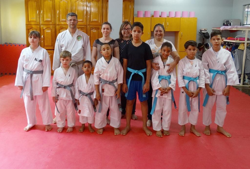 Os 15 alunos que fazem parte do Projeto Karatê Campeão de Maripá, tiveram sua primeira avaliação para a troca de faixa. O Exame de Faixa foi realizado no dia 10 de agosto e a troca efetiva ocorreu na sexta-feira (31), pois o resultado é composto também pelo desempenho escolar a partir da análise do boletim.