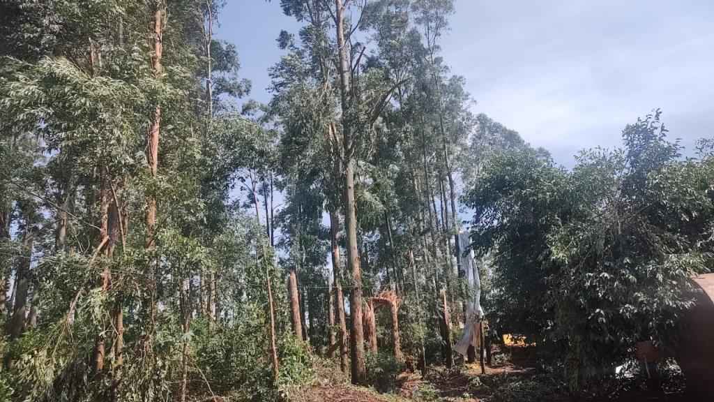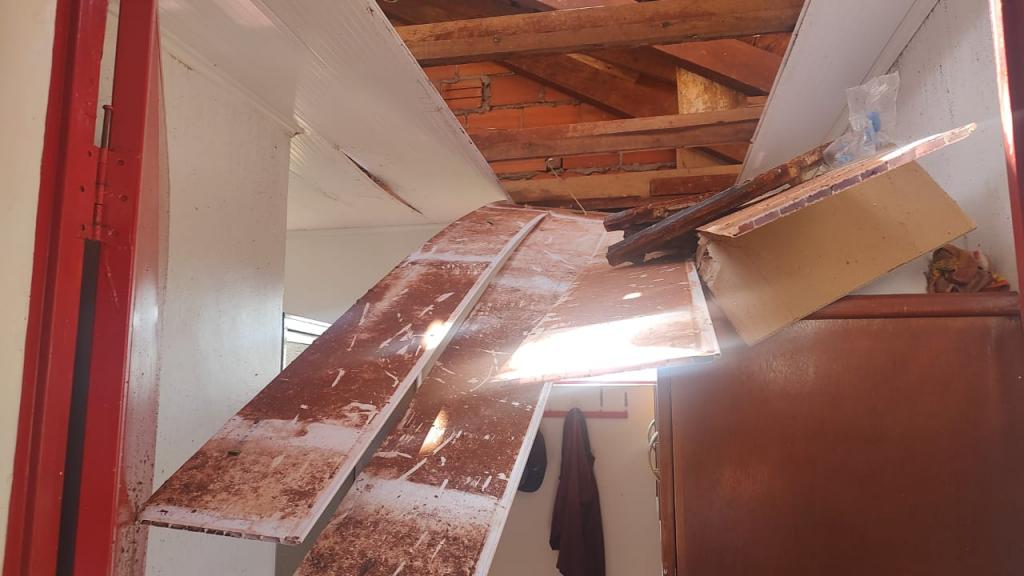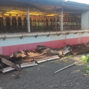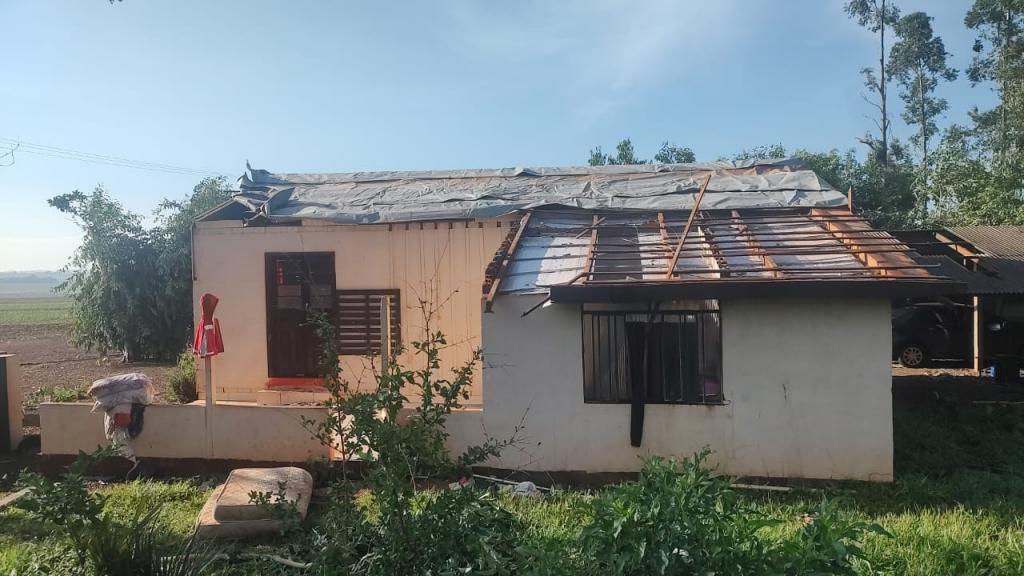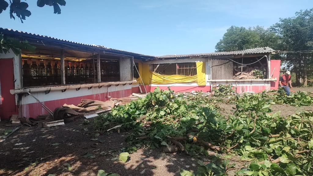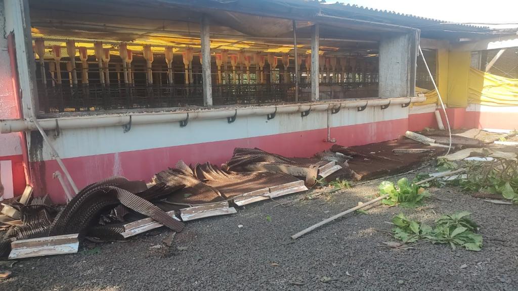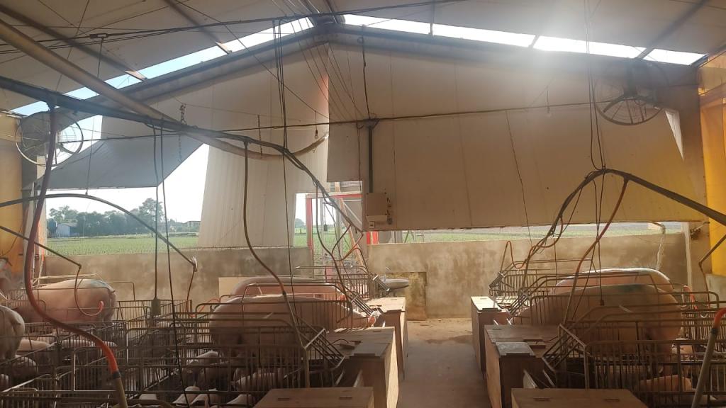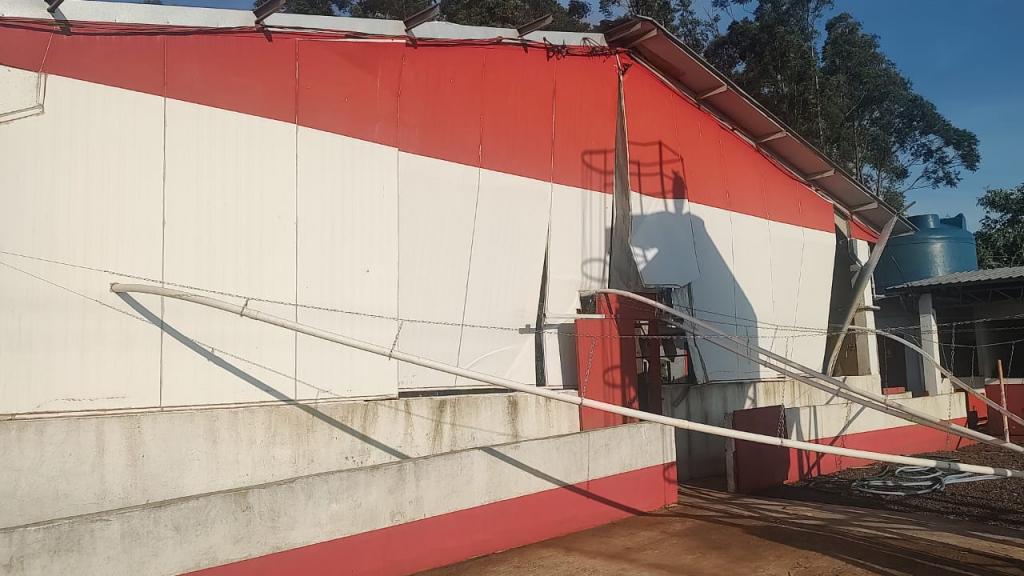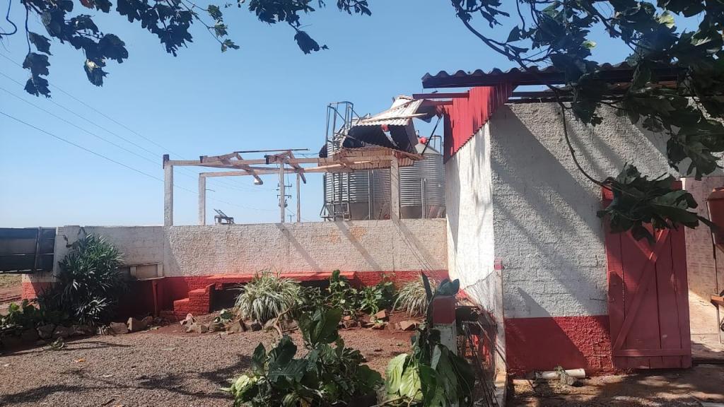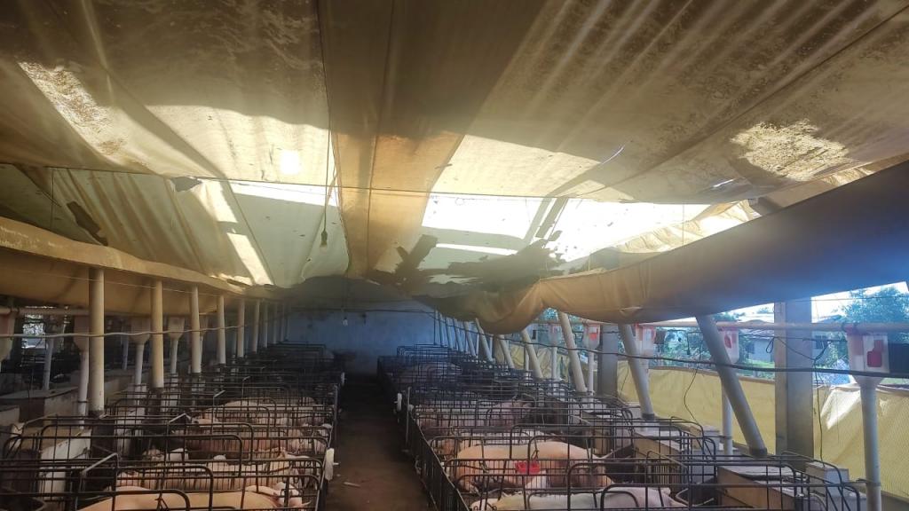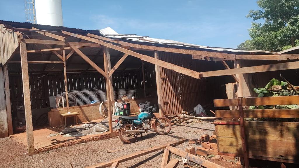 Na propriedade do produtor rural Joelmir Oliveira os prejuízos ainda estão sendo calculados, houve destelhamento na casa no barracão, árvores foram derrubadas e na estrutura das porcas criadeiras e leitões é visível a destruição com a força dos ventos (confira nas fotos).