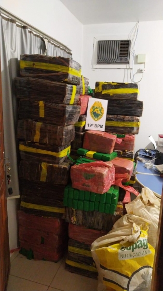 Na delegacia a droga foi pesada com a balança disponível, sendo totalizados 1.415 Kg.