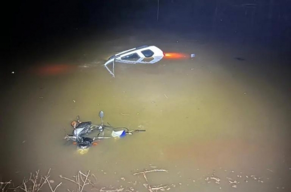 O veículo Duster estava com uma carretinha com três motocicletas, entre elas, duas eram roubadas. Todos os veículos foram parar dentro do açude.