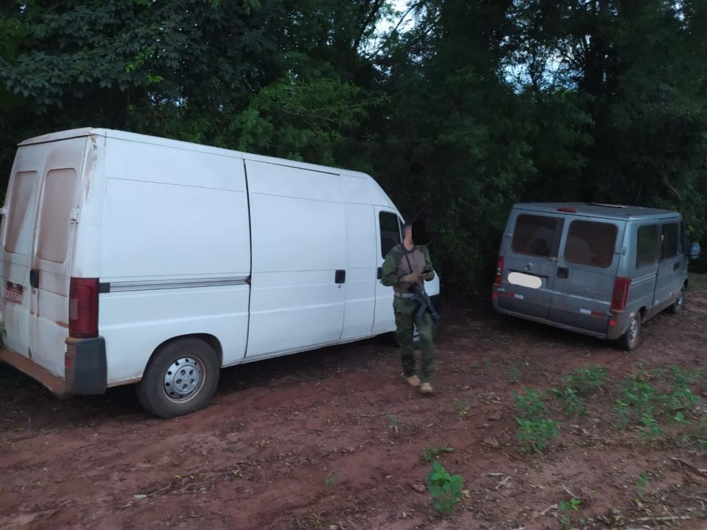 Ao chegar no local, os criminosos perceberam aproximaram policial e começaram a fugir da fiscalização policial se utilizando de diversos veículos que após acompanhamento tático embarcado foram deixamos ao abandono e matas fechadas da região.