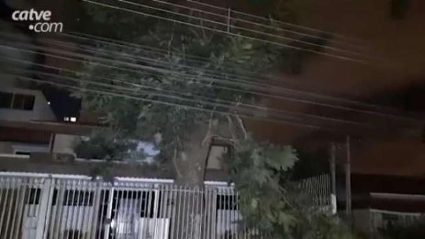 A queda de galhos de árvores provocadas por fortes ventos deixou 187 imóveis sem energia elétrica, na noite de terça-feira (5), na Rua Rio de Janeiro, região central de Cascavel.