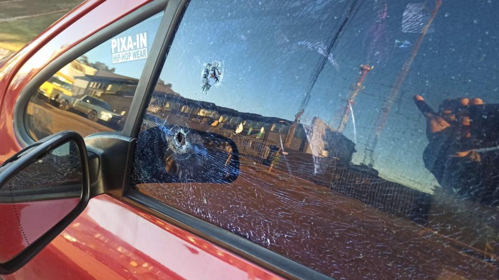 As marcas dos Tiros ficaram na janela do Peugeot, segundo a Polícia Civil, a vítima já tinha várias passagens por tráfico de drogas pela carceragem da delegacia.