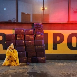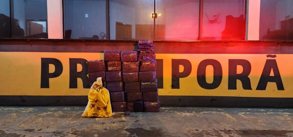 No interior do veículo havia uma quantidade de 23 fardos e uma bolsa de cor branca (de ração animal) totalizando aproximadamente uma quantidade de 280,700 kg de maconha.