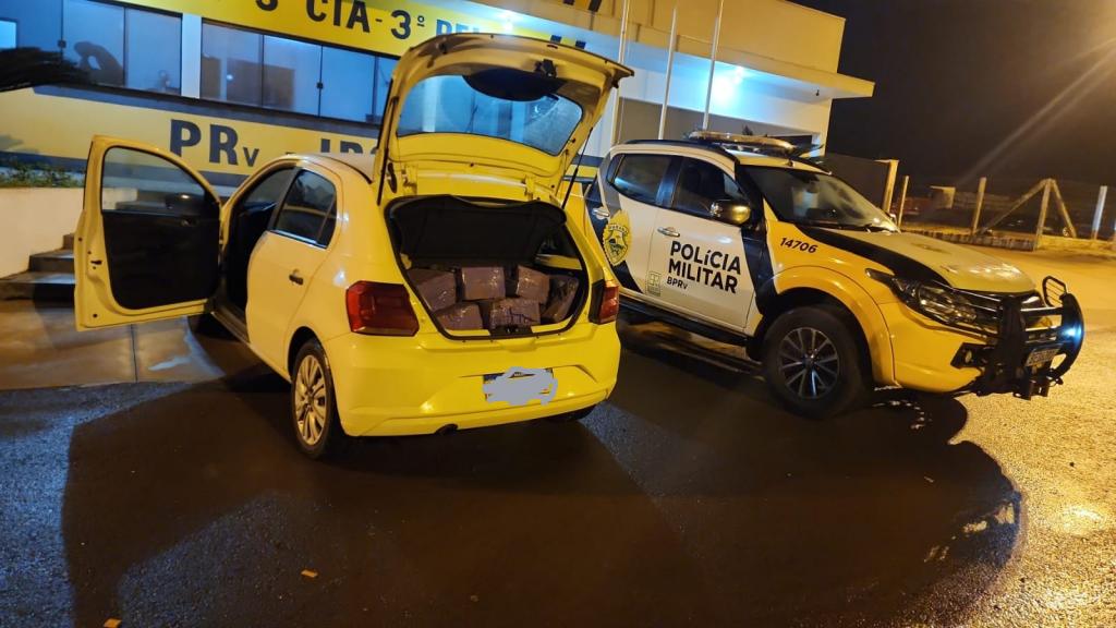 Na madrugada desta quarta-feira, durante fiscalização de fronte ao Posto de Polícia Rodoviária Estadual na Rodovia Estadual PR-323, a equipe da Polícia Rodoviária Estadual visualizou o veículo VW/Gol de cor branca cuja sua suspensão traseira estava baixa, indicando que algo ilícito estaria sendo transportado algo pesado em seu interior.