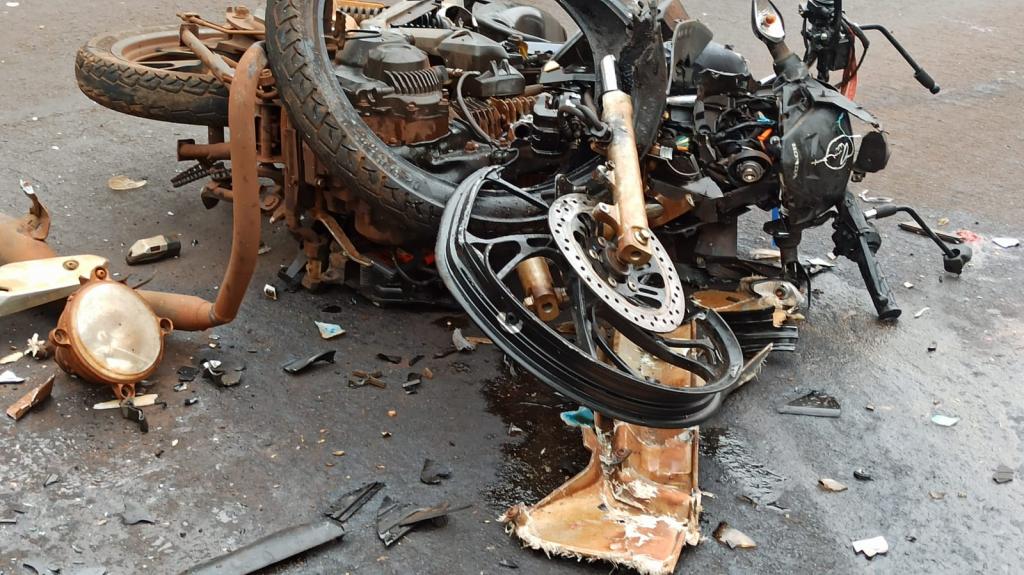 O rapaz conduzia uma moto Honda CG Titan de 150 cilindrada placa Mercosul quando colidiu violentamente de frente com o caminhão de transporte de ração com placas também do Mercosul.