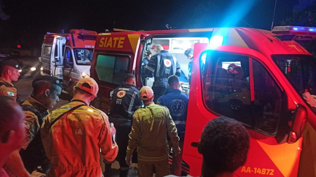 Dois disparos provavelmente de revolver calibre 38, um acertou a vítima de raspão e outro que atingiu o abdômen do lado esquerdo, os socorristas do Corpo de Bombeiros acionaram a equipe do SAMU por se tratar de uma situação grave.