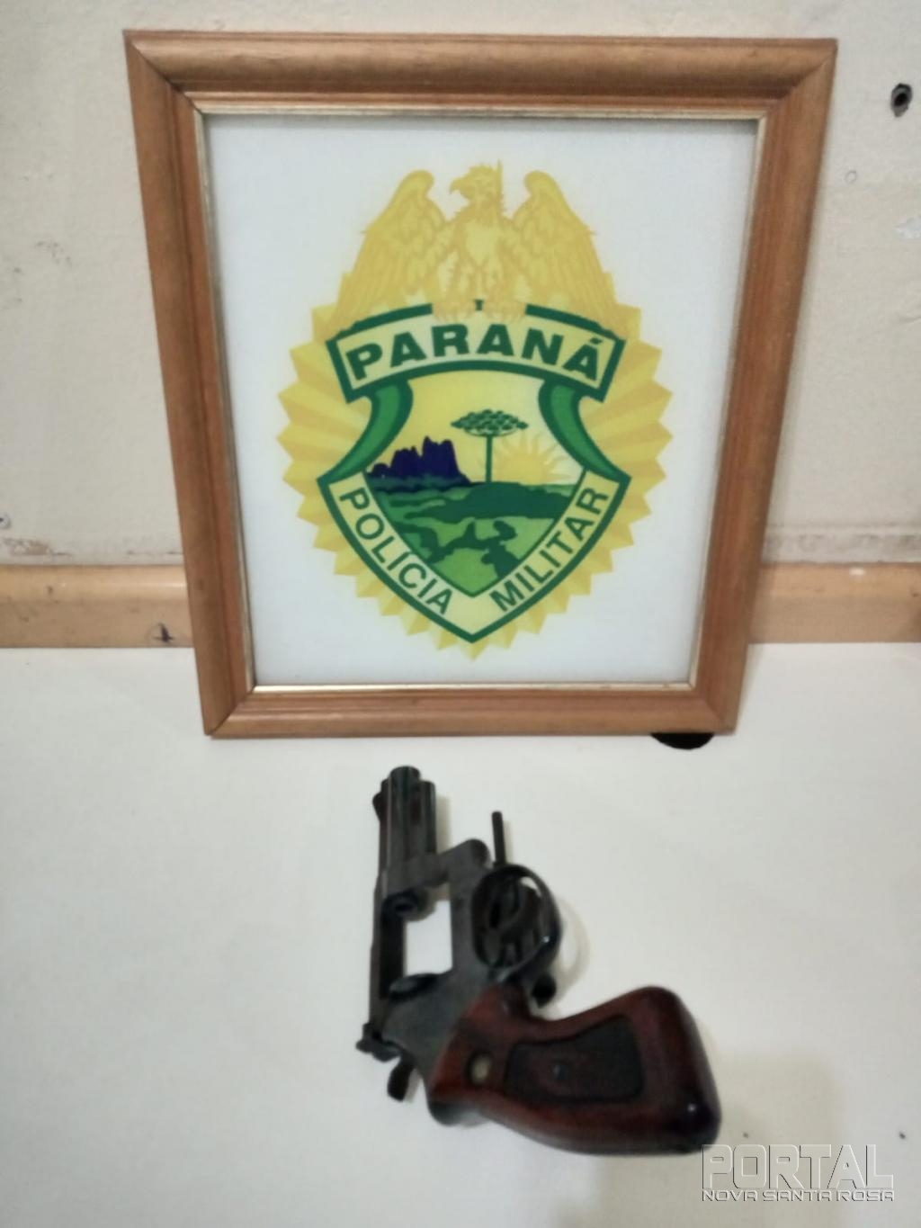 Neste momento os militares começaram a verbalizar para que o mesmo saísse da residência com as mãos na cabeça, sendo a ordem acatada e em revista pessoal nada foi localizado com marciano, porém durante buscas no quarto, foi localizado embaixo do guarda-roupa, um revólver calibre .38 Special de marca Taurus, sem munição.
