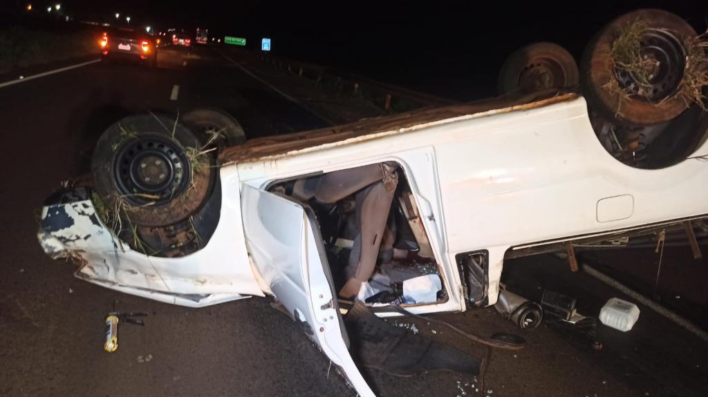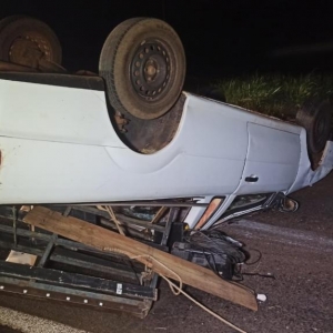 Um rapaz de 26 anos condutor de um Volkswagen Saveiro com placas de Toledo capotou e ficou com as rodas para cima após acidente na BR 163 entre Toledo e Marechal Rondon na noite deste domingo em torno das 22h00.