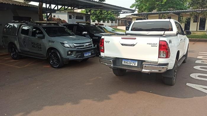 Os Policiais da ROTAM receberam a informação que o Hilux estaria se dirigindo a Toledo e após se posicionaram na BR 163, próximo ao viaduto com a avenida Egídio Jerônimo Munaretto, o chassi do veículo não batia com a placa que ostentava.