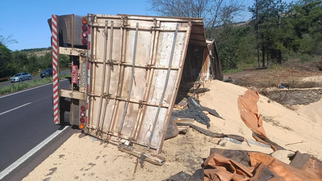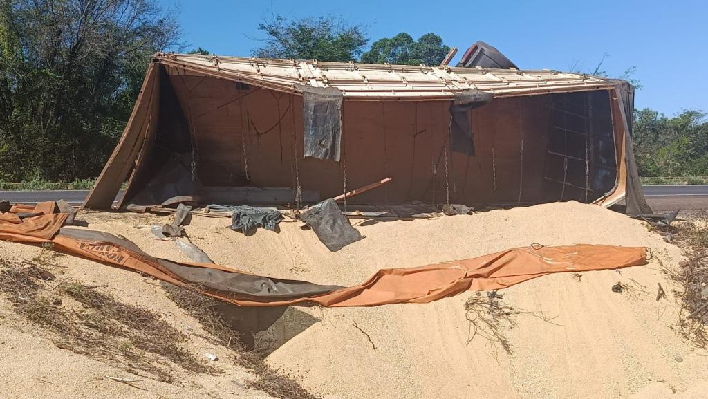 De acordo com informações obtidas no local, o condutor, de 63 anos, relatou que trafegava pelo trecho quando, a cerca de 600 metros da ponte sobre o Rio Lopeí, acabou sendo fechado por outro caminhão. Para evitar a colisão, ele desviou para o lado direito da pista, momento em que o segundo reboque da carreta perdeu o controle e tombou no acostamento.