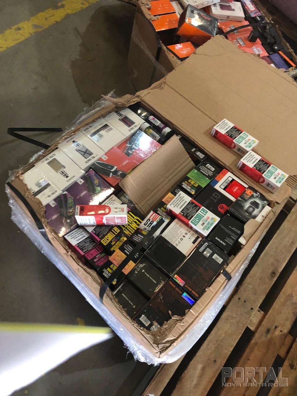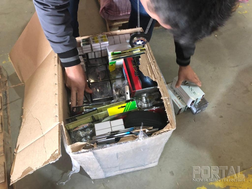 Entre as mercadorias foram encontradas grandes quantidades de cigarros eletrônicos (narguilé e eletrônicos) essências e equipamentos de pesca.