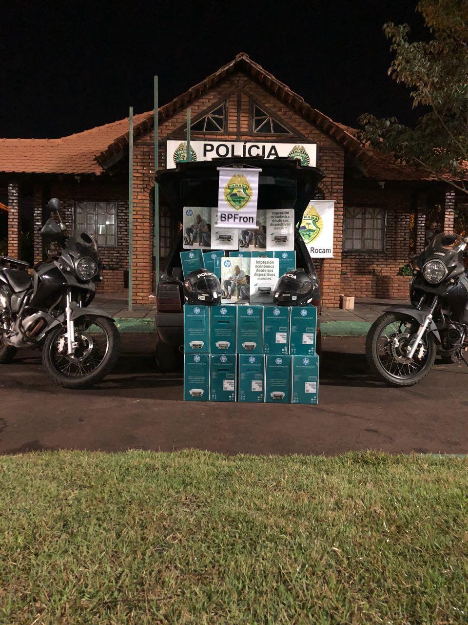 Também na tarde de ontem, durante a operação realizada, Policiais Militares do BPFron através da R.O.C.A.M. - Rondas Ostensivas com Aplicação de Motocicletas realizavam abordagens na BR 163 em Guaíra - PR quando abordaram um Fiat Uno com dois ocupantes. O veículo estava carregado com produtos contrabandeados do Paraguai. O contrabando, veículo e indivíduos foram encaminhados aos procedimentos.