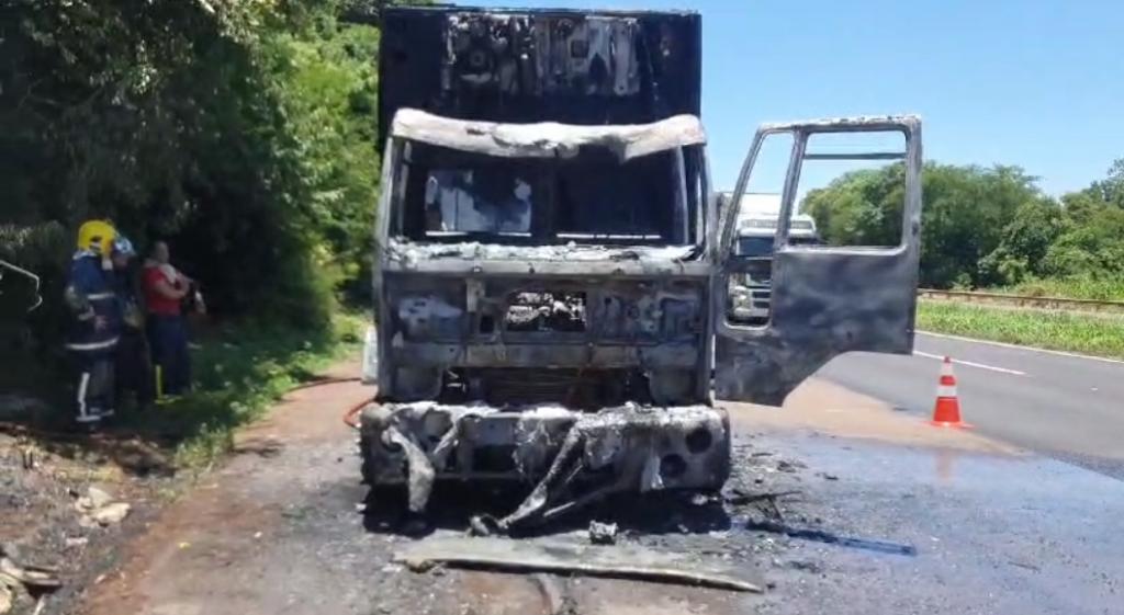De acordo com o que foi informado, as chamas se concentraram na cabine do veículo, mas danificaram toda a estrutura, sendo que a suspeita é de que o fogo se iniciou a partir de uma pane elétrica.
