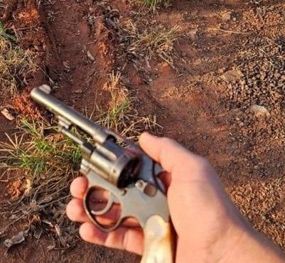 Os policiais militares receberam informações anônimas de que, na beira da estrada na Linha Nova Aratiba, havia um revólver abandonado.