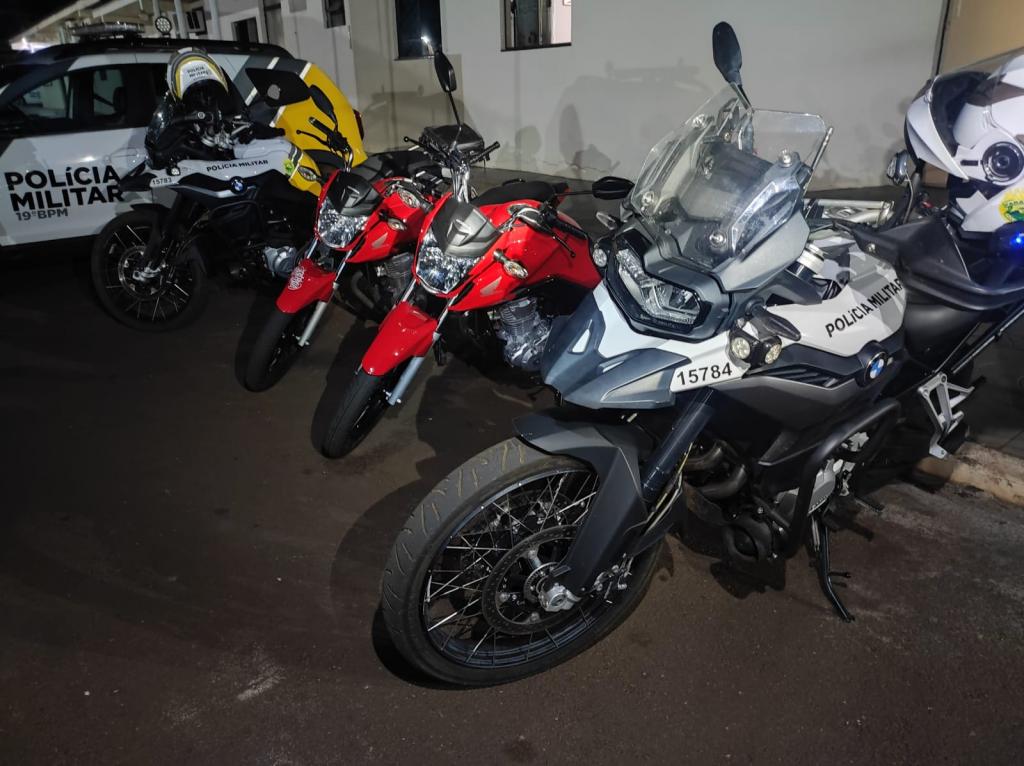 A equipe ROCAM da PM durante motopatrulhamento na rua 13 de Abril em Toledo na noite de sexta-feira (01), avistou duas motocicletas que transitava em sentido contrário da equipe.
