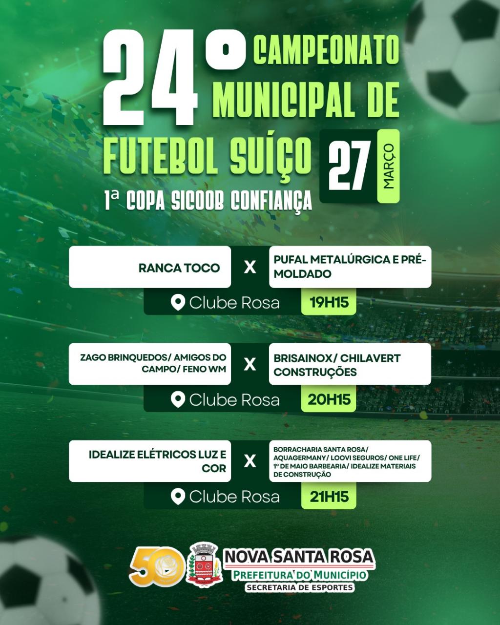 A bola volta a rolar nesta sexta-feira (27), à noite, pelo Campeonato Municipal de Futebol Suíço em Nova Santa Rosa. A rodada acontece no Clube Rosa e promete movimentar o cenário esportivo do município com três jogos.