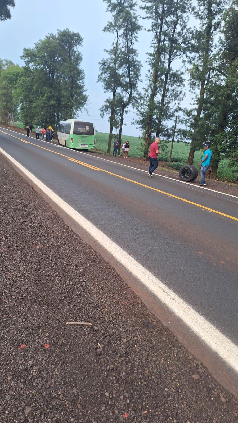 Conforme repassado ao Correio do Ar, o ônibus da Secretaria de Saúde de Palotina transitava pela rodovia quando em determinado momento a roda traseira se soltou, atingiu uma camionete e outro veículo.