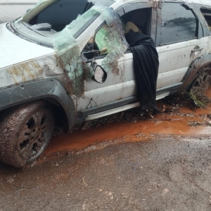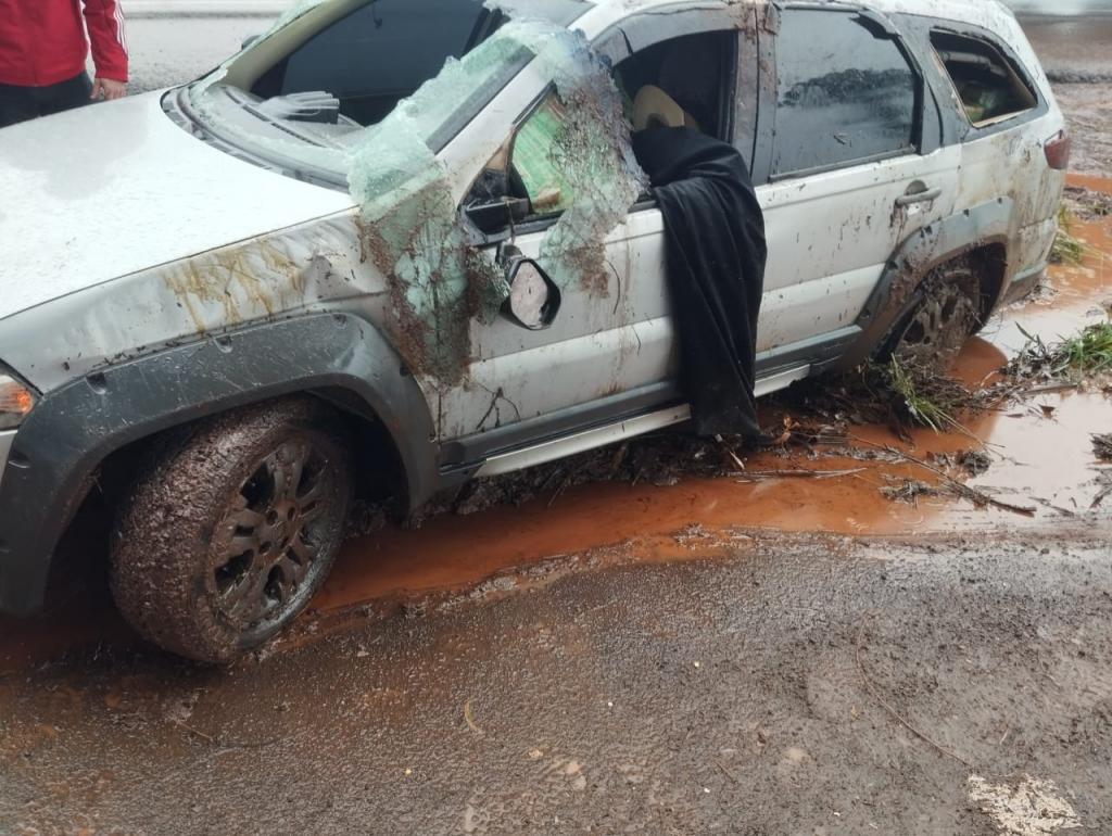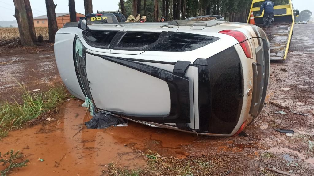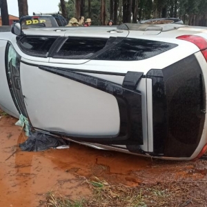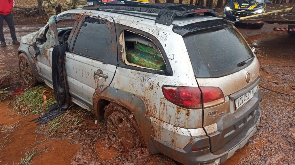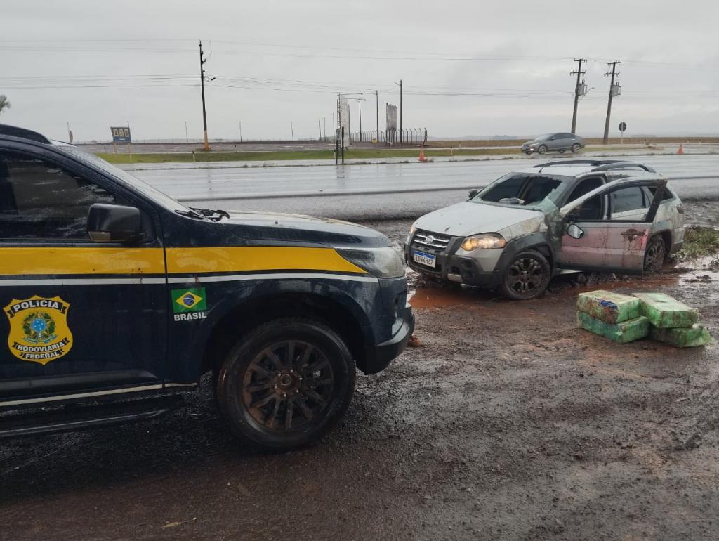 Ao tentar realizar um retorno na contramão, no distrito Sede Alvorada, o homem capotou o automóvel. Ele ficou preso entre os fardos de maconha e precisou ser resgatado pelos policiais.