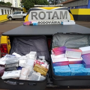 Na manhã desta segunda-feira (02), durante operação na PR 239 Km 604 a equipe ROTAM abordou um ônibus do transporte coletivo, com itinerário Toledo a Londrina, sendo que após revista no bagageiro forma localizados 03 malas contendo eletrônicos e aparelhos celulares.