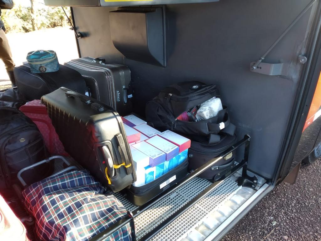 Realizada a conferência do ticket foram identificados dois passageiros os quais assumiram serem os responsáveis pelas mercadorias.