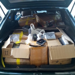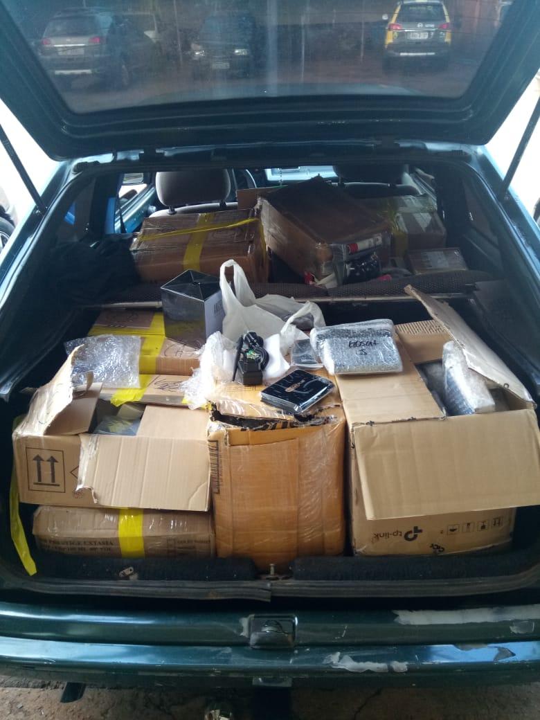 Durante busca nos veículos foi constatado que os carros estavam carregados de eletrônicos.