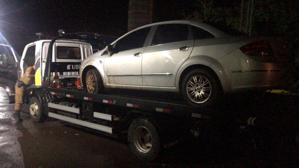 No local foi constatado se tratar de um Fiat Linea de placas licenciado em Lagoa Santa - MG e o veículo encontrava-se carregado com aproximadamente 25 (vinte e cinco) caixas com cigarros contrabandeados do Paraguai. A equipe de serviço de Cia de Corbélia, estiveram no local prestando apoio na remoção do veículo.