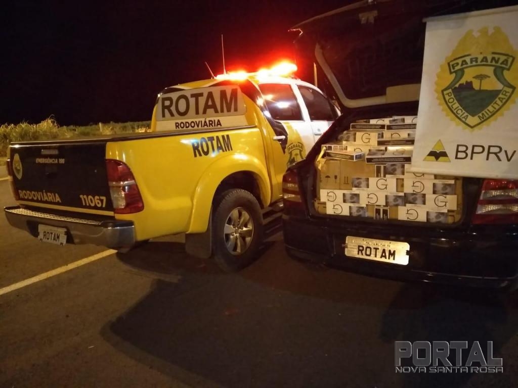 Durante a perseguição, os veículos entraram em uma estrada rural vindo a abandonar um dos veículos, no local foi constatado se tratar de um GM/ Astra de cor preta, o veículo estava completamente carregado aproximadamente 30 ( trinta )caixas de cigarros contrabandeados do Paraguai, após a confecção da documentação de praxe o veículo juntamente com o cigarro foram encaminhados a Receita Federal de Guaíra.
