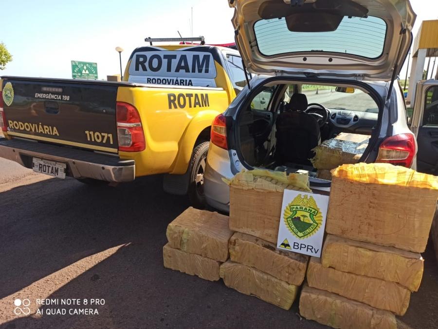 O Ford KA com placa de São Paulo, capital, estava carregado com dezenas de fardos de maconha.