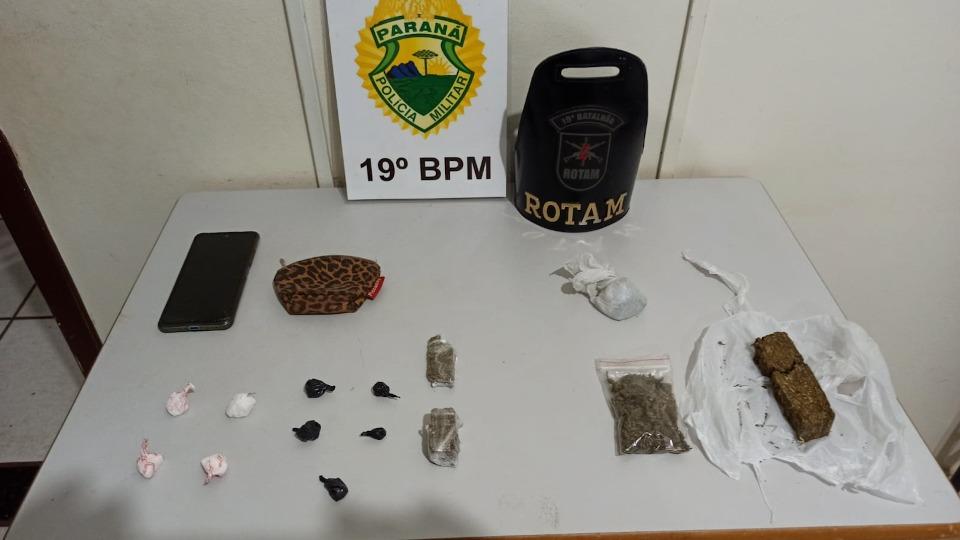 Durante a revista, foram encontrados com o homem 5 pacotes de cocaína (totalizando 10,1 gramas), um celular e R$100 em dinheiro.
