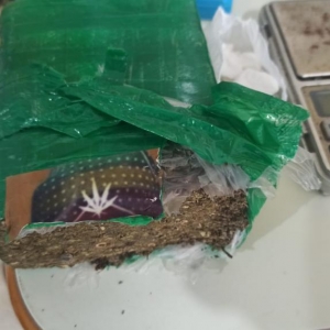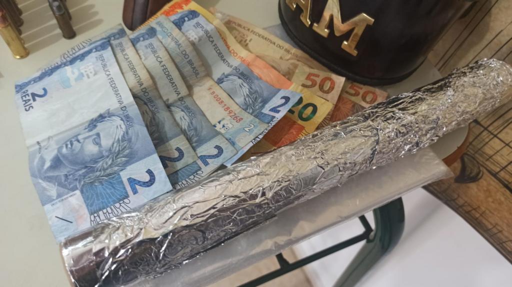A equipe realizou a abordagem, sendo que com o condutor nada de ilícito foi encontrado. Durante busca veicular foi possível encontrar duas porções de maconha pronta para venda e dinheiro trocado, questionado o elemento sobre a origem da droga ele relatou que estaria fazendo a venda pois estava passando por dificuldades financeiras e que na sua residência estaria mais uma porção grande de maconha, uma porção de cocaína e mais duas armas de fogo.