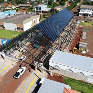 Além da cobertura, a obra segue em diferentes frentes de acabamento. Estão em andamento a instalação de tijolos maciços aparentes, o calfinamento das estruturas para posterior pintura, além da implantação do sistema de para-raios e da rede elétrica. Nos próximos dias, está prevista a aplicação da capa asfáltica, etapa fundamental para a conclusão da infraestrutura.